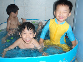 After a while, everybody was here. Dinner started , i quickly finish off my meal so that i can play with Brandon and Yvonnie. Ethan still cant walk steadily yet, so he can only see us play while sitting on his high chair.